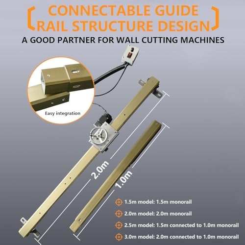 Transform Your Wall Grooving Experience with Our Advanced Auto-Feed Rail System! Say goodbye to the tedious, labor-intensive wall grooving process and welcome a new era of efficiency with our state-of-the-art auto wall chaser rail. Designed for professionals and DIY enthusiasts alike, this powerful tool features a robust 150W pure copper motor that ensures reliable performance for all your cutting needs. With the convenience of remote control, you can manage the feed motion effortlessly—no heavy lifting required. **Key Features & Benefits:** - **Powerful Performance:** The 150W all-copper motor delivers exceptional power, allowing for smooth operation without the need for manual lifting, ultimately saving you valuable time and energy. - **Durable Construction:** Crafted from high-strength 6063 thickened aluminum alloy, the rail system is built to last, providing a strong and stable platform that withstands rigorous use without deformation. - **Lightweight Design:** With a rail diameter of 70mm (2.75") and a weight of approximately 33 lbs, our system combines optimal rigidity with lightweight portability, making it easy to maneuver. - **Safety First:** The innovative sleeve-type connection design ensures a secure attachment of the guide rail, providing stability and safety during use to prevent any disconnections. - **User-Friendly Control:** The included remote controller allows for intuitive one-touch operation (FWD/REV/STOP), while the stepless speed knob gives you precise control over the cutting speed. - **Customizable Depth Settings:** Featuring a depth adjustment wheel, this rail system enables quick and accurate changes to cutting depth, accommodating various groove requirements as needed. **Specifications:** - **Rail Lengths Available:** 4.9 ft (150cm), 6.6 ft (200cm), 8.2 ft (250cm), 9.8 ft (300cm) - **Primary Material:** Thickened Aluminum Alloy - **Rail Diameter:** 70mm (2.75") - **Kit Includes:** Rail, 150W Motor Unit, Mounting Bracket, ...
