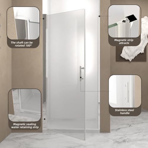 6mm transparent glass: 36x72 in Durable and provides a clear line of sight, ensuring safety and quality. Chrome aluminum frame: Lightweight, corrosion-resistant, and exudes a modern feel, enhancing the bathroom's premium ambiance. Safety film protection: Prevents shattered glass from splintering, providing all-around family safety. Raised water-blocking strip: Effectively prevents water overflow, achieving dry-wet separation for a cleaner bathroom. Stainless steel handle: Aesthetic and practical, making it easier to open and close doors, showcasing attention to detail. Swinging door design: Space-saving, smooth operation, adaptable to various bathroom layouts. Anti-shock packaging: Ensures safe transportation, guaranteeing the product arrives undamaged.