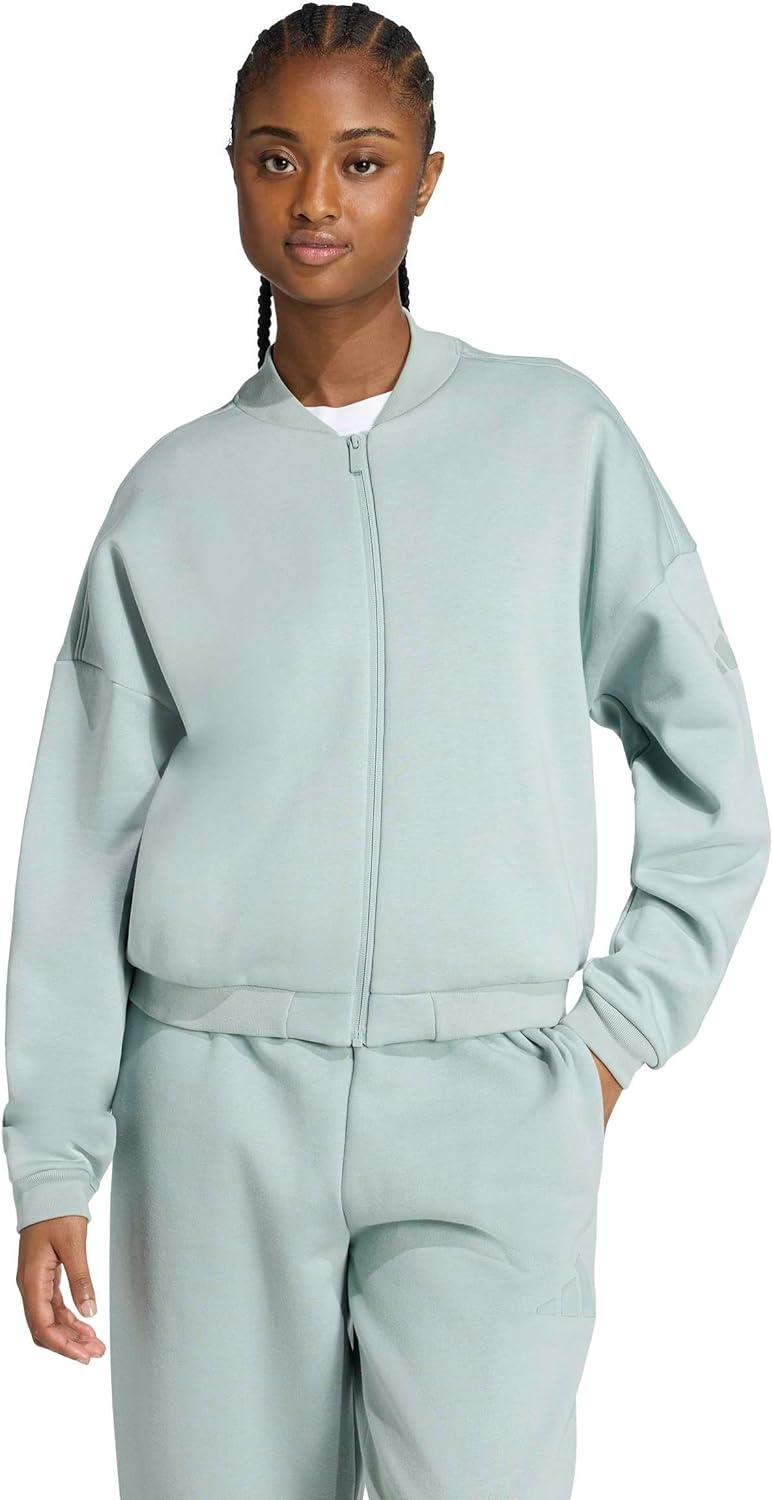 A modern take on a classic silhouette, this adidas Essentials bomber jacket for women is ready for anything. The fleece build keeps you cozy on chilly days while a 3 Bar Logo on one sleeve adds a sporty touch. Zip it up over your favorite tee or sweater for a look that's effortlessly cool.