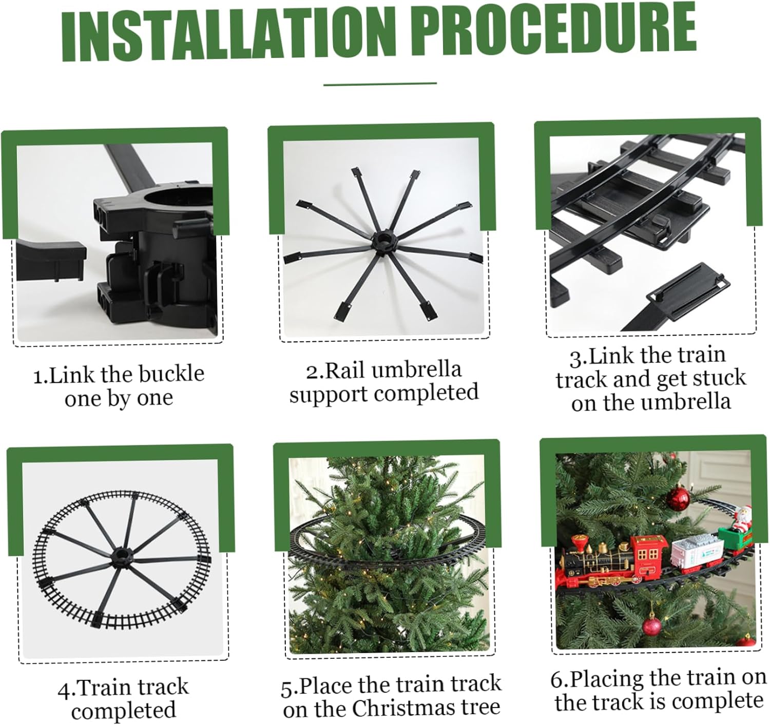 Description: Create a magical Christmas experience with the Christmas tree train set. This delightful train set adds a touch of wonder to your holiday decorations. Simply install the track on your Christmas tree, and watch as the train glides along the tracks, encircling the tree with festive charm. The set features 2 carriages with intricate details, capturing the essence of a traditional Christmas train. Each piece is designed to resemble a classic train, adding authenticity to your holiday display. Equipped with lights and sound effects, the train set creates a joyful ambiance. The lights illuminate the train and its surroundings, while the sound effects enhance the festive atmosphere. This Christmas train set is not only a delightful addition to your holiday decor but also makes a perfect for kids and train enthusiasts. It sparks imagination and brings joy during the holiday season. It can also become a cherished family heirloom, creating lasting memories for years to come. Add a touch of mystery to your Christmas celebrations with the Christmas tree train set. Features:. Christmas Train Set. -Color: As Shown. -Material: Plastic. -Size:. Track Diameter: about 89x89cm/35.04x35.04inch. Box Size:about 45x9x28cm/17.72x3.54x11.02inch. -Battery: 4 x AA Battery(Not Include). Note: Manual measurement, please allow slight errors on size. The colors may exist slight difference due to different screens. Package Including 1 x Christmas Train Set.