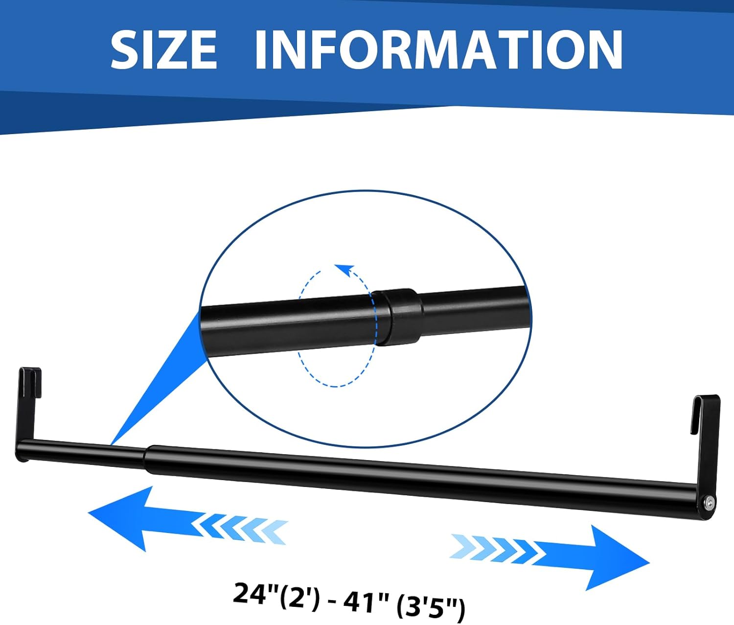 Features: Multi functional and space saving: combines durability with practicality, offering a reliable solution for hanging clothes, drying laundry, or displaying items in both home and commercial environments. Enhanced ventilation for faster drying: the wire shelf design promotes air circulation, reducing drying time for clothes and providing quick access to hangers and other essentials. Specifications: Material: metal Color: black Size: rod length 24--41 inches/ 61--104 cm, rod diameter: 0.98 inch/ 25 mm, 0.87 inch/ 22 mm Package includes: 1 x Rod 2 x Accessories, 2 x Screws 1 x Wrench Notes: Manual measurement, please allow slight errors on size. The color may exist a slight difference due to different screen displays.
