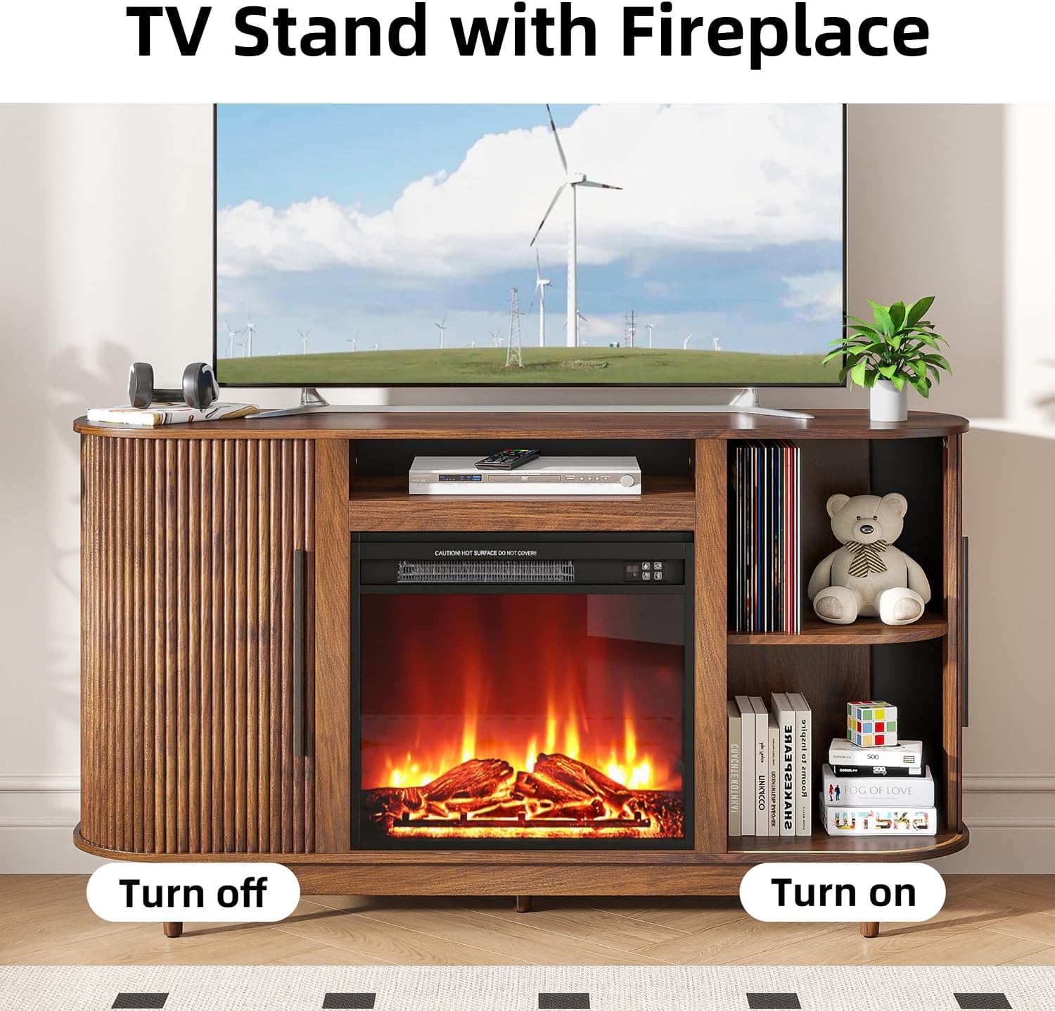 | Set Name | tenouaai Fluted TV Stand with Fireplace |