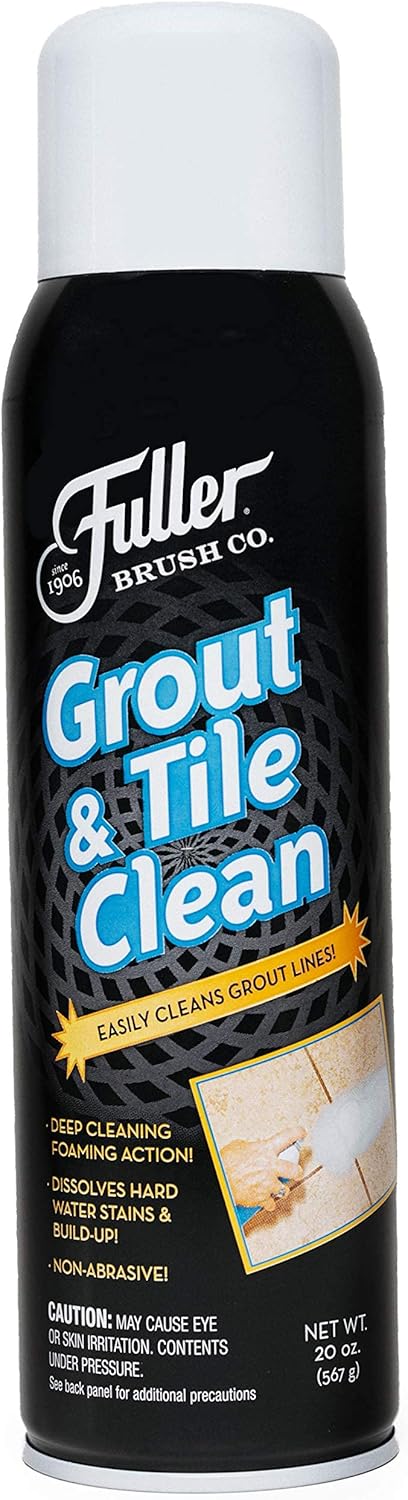 Say good-bye to vigorous scrubbing or using a toothbrush to clean the grout on tile floors ! Removing the toughest dirt and scum build-up, this Fuller Brush Grout & Tile Clean boasts deep-cleaning foaming action to easily clean both sealed and unsealed grout , and so much more! The powerful formula dissolves tough build-up of dirt, grime, soap film, water rings, mineral deposits and hard water stains. without scratching or harming surfaces. Plus, it clings to vertical surfaces , making it easy to clean and rinse dirt away in no time at all. For extra scrubbing and cleaning action, use with Fuller’s Shower Track & Grout Brush, Tub & Shower E-Z Scrubber, Tile Grout E-Z Scrubber, Big E-Z Scrubber and Dual-Action Microfiber Cloths . In addition to making grout lines look like new , this cleaner restores luster to fiberglass, porcelain, ceramic, Formica, stainless steel, synthetic marble, chrome, vinyl and rubber . For safe cleaning, it contains biodegradable cleaning agents without any phosphates, chlorine bleach or harsh fumes. Do to the strength of this formula, it should not be used on glass, natural marble or varnished surfaces, and should be pretested in an inconspicuous area when cleaning grout lines as it may remove color pigments from some colored grout. Are you tired of the grout on your tile floors looking dirty or dingy? Do you have those real tough stains on the bathtub or sink that you continuously try to scrub away with no success? Let Fuller Brush Grout & Tile Clean come to your rescue – effectively and efficiently getting rid of tough stains to leave your bathroom sparkling clean!