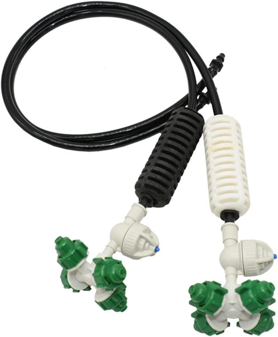 Irrigation is even, and the slow irrigation speed allows the soil to more completely absorb the water in the root area of the plant.Product: Cross-sprinkler with anti-drip and single barbMaterial: ABS+POM+PVCConnection size: 4/7 mm hoseThe specifications of the rotating nozzle are as follows:Pressure: 1.5-3 kgFlow rate: 25-35L/HSpray radius: 0.9-1.2 metersCaliber: 0.5mmOne set includes:Cross sprayer: 1Anti-drip: 1Single hook: 1Heavy hammer: 1Double barb: 14/7 mm hose: 4/7-50 cmPacking: 10 setsUses: Mainly used for non-fruiting, seedling irrigation, garden flowers watering, and greenhouse coolingInstallation method: 1/4 inch hose can be connected