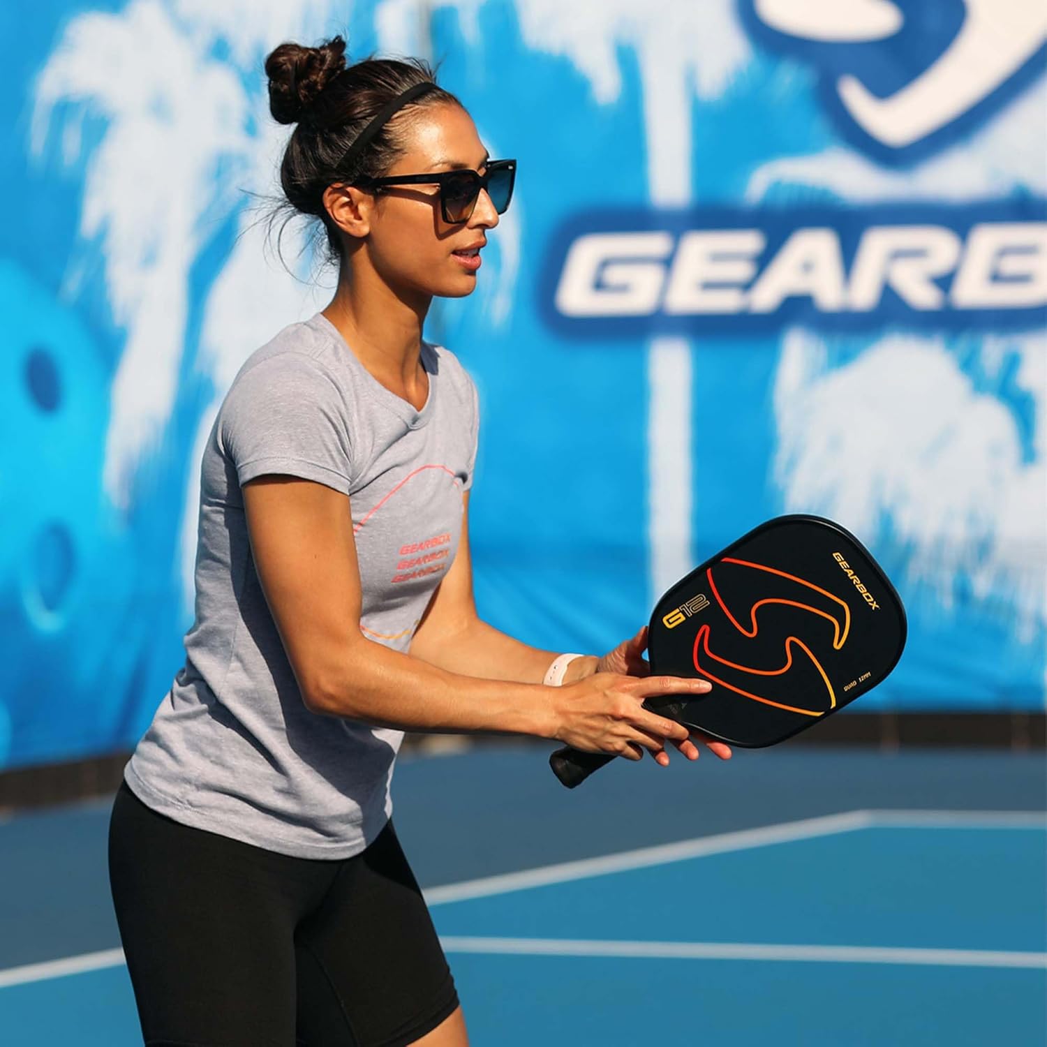 The G12, starts off your game with an advantage, designed to surpass competitors in its category and making learning pickleball fun and easy. Created by Gearbox, the most innovative and durable pickleball brand, the G12 offers an impressive performance with its combination of power with control, maneuverability, a forgiving sweet spot and comfortable grip, all at an affordable price point. This paddle takes the first step with you on the court as you learn what the pickleball craze is all about. If you’ve moved on from entry level play and are quickly working your way to becoming a force to be reckoned with on the court, consider the G14 or G16 of the G series to take your game to the next level. Quad Shape Frame: The Quad shape frame is ideal for its larger and wider body, giving it an expanded sweet spot and more forgiving play. SPECIFICATIONS: Material: 8-Ply Construction. Fiberglass Core Material: 12mm Polypropylene Honeycomb Core Head Shape: Quad Weight: 7.6 - 8.0 oz Handle Size: 4” grip Total Length: 15 7/8” Head Width: 7 7/8” Head Length: 11 1/8” Handle Length: 4 3/4” Grip: Gearbox Smooth Wrap - Black Warranty: 6 Month