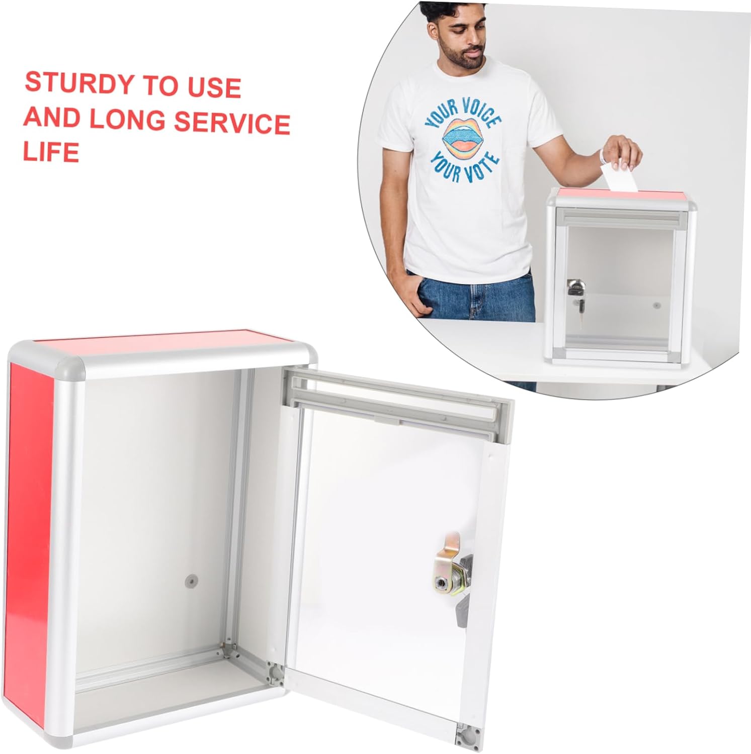 Package Include 2 x mail box Features -Material:Aluminum alloy Letter Box with Lock -Size:28.50X22.00X10.00cm/11.20X8.65X3.93in Public Voting Box -Color:Red Complain Letter Box - Lockable wall mount mailbox is made of a strong material with lock, and it gives faster and more immediate Public Letter Box. - The material is and , which is wear resistance and for the long time use hanging . - Modern touch to exterior decor, front door house, commercial, business, classic rural & modern apartment office mailboxes. - Mail hold multiple letters, newspapers, emails, etc, and also can accommodate letters from the family for a period of time wall mount mailboxes. - This multi- function box can be used for donation, collection, key drop, express checkout, comments suggestions box, ballot box. post tin boxGoods Descriptionwall mounted mailbox That's because our suggestion box can meet your need.storage container for voting If you are looking for a suggestion box, then your research is over here.reception pox Adopted of , and for long time use.letter post container This box is not easy to get deformed and bring you much convenience