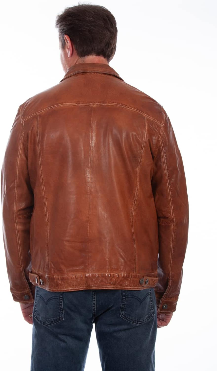 Experience a Vintage Cowboy Style with this Stunning Lambskin Leather Jean Jacket! Featuring a button front closure, two side pockets, and two chest pockets.