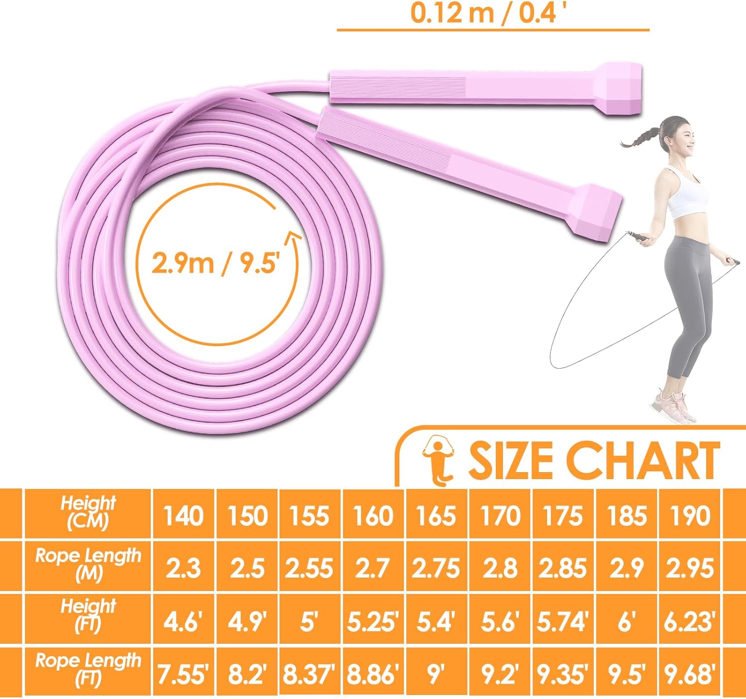 1. Jumping rope is one of the best aerobic exercises that spend little time burning a lot of calories. It's a cheap, portable exercise that you can do anywhere, anytime, and has less impact than jogging. 2. No age limitation. Enhance children’s growth and improve their intelligence.Suitable for indoor and outdoor sports, cordless mode can be selected for small indoor space, and corded for outdoor, which is convenient and saves space. Specification: Color: Black + Black, Blue + Purple Material: ABS, PP Rope length: about 290cm / 9.5 ft Note: 1. Please start slowly to avoid being injured accidentally by fast speed. 2. Please choose an open area for jump rope and be careful if someone stays near you. Package included: 2 * Jump Ropes How to adjust the length? 1. Pull out the rope from the handle. 2. Loosen the adjuster and adjust the rope to desire length. 3. Cut off excess rope. 4. Place the adjuster end back to lock and put the rope back.