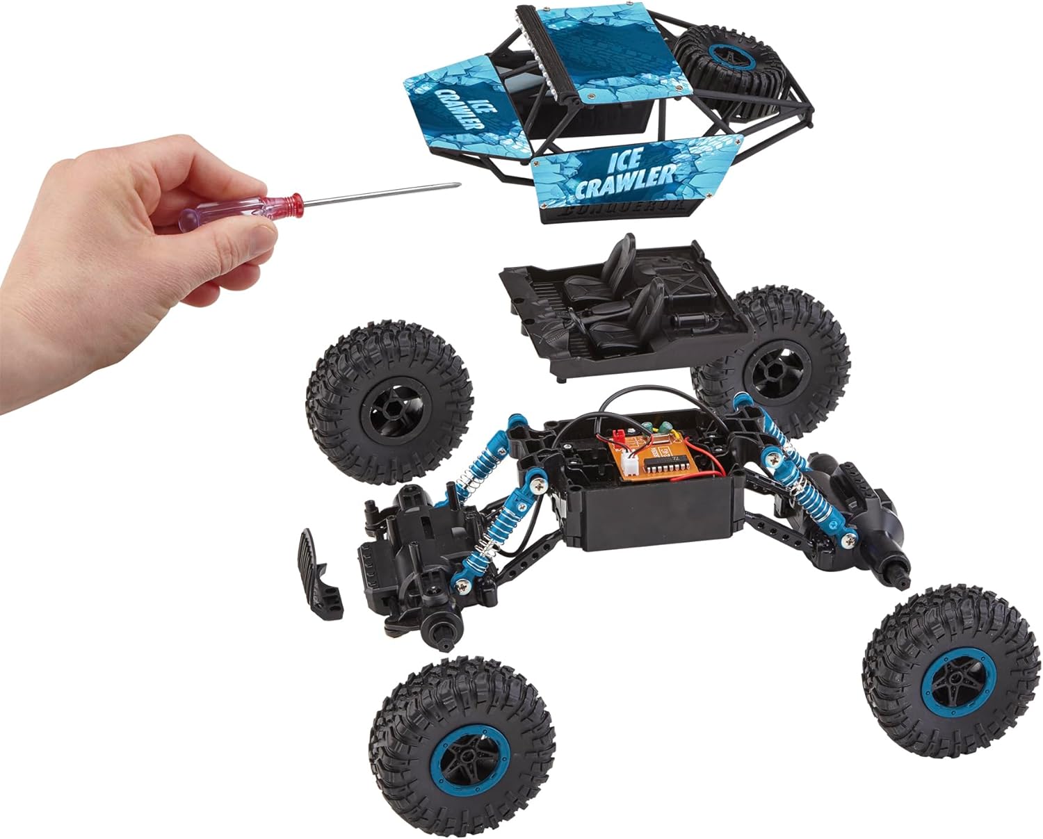 Unleash the spirit of adventure this Christmas with the exclusive RC Crawler Advent Calendar! This Advent, the Revell Control RC Crawler Advent Calendar brings untamed driving fun straight to your door! In 24 exciting building steps you purchase a spectacular 1:18 model that makes children's hearts beat faster from 8 years. With its realistic design and large tires, it's ready to conquer the most challenging terrain. Light up your kids' eyes as they experience the fascination of engineering and construction by creating their own crawler! Scope of delivery: 1 kit for exciting build at home 1 2CH GHz remote control for precise control on all adventures Interchangeable body with 2 unique designs for individualized fun 1 Screwdriver - the essential tool for assembly 1 easy-to-follow instruction manual "AA" batteries included so the fun can begin immediately! This kit is suitable for both beginners and advanced young tech enthusiasts who have a heart for adventure and exploration. With the ability to be played both indoors and in the garden, it allows for hours of experimental fun.