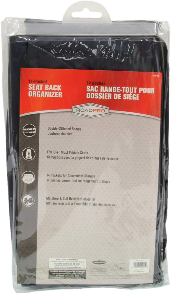 Owning this 14-pocket seat-back organizer for your truck interior in a stylish dark blue hue offers a multitude of advantages. Designed to effortlessly slip over the back of your headrest this organizer is a game-changer for keeping your vehicle clutter-free and your essentials close at hand. Its well-thought-out pockets are perfect for stashing maps tools gloves and whatever else you may need during your travels. What sets it apart is its impressive resilience. It is made with water-resistant and soil-resistant vinyl with double-stitched seams for long-lasting durability to withstand the rigors of the road. Measuring a generous 29 inches in height and 18 inches in width it offers ample space to accommodate up to 11 pounds of essentials so you are always prepared for the journey ahead. And when the inevitable messes occur the vinyl construction makes it a breeze to wipe clean. Easy to install and also easy to remove. Use one in your semi and one in your car to keep your vehicles organized. Check out our Amazon RoadPro storefront for more semi truck accessories.