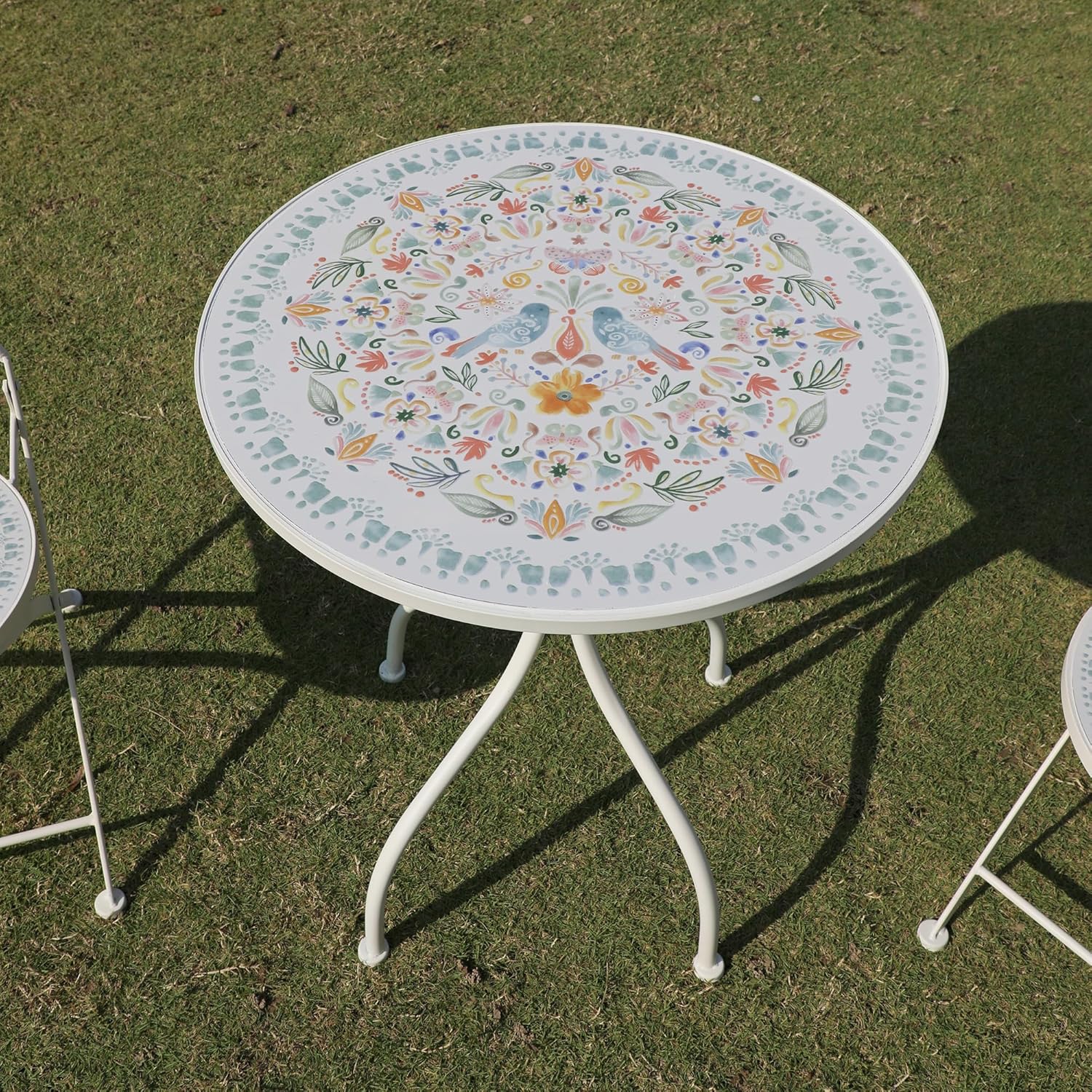 Add a dash of timeless charm to your space with our Ceramic - Top Round Table! Boasting a beautifully patterned ceramic tabletop in colorful flower bird, this table brings a vintage - chic vibe to any indoor or outdoor area. The 24in diameter surface offers just the right amount of space for your morning coffee, afternoon tea, or decorative potted plants. Crafted with a sturdy, powder - coated white metal frame, it stands 28.5in tall and delivers reliable stability, whether placed on your patio, in the garden, or as a cozy accent in your sunroom. The ceramic top is a breeze to clean – simply wipe away spills or dust – and the metal frame resists rust, ensuring lasting beauty with minimal maintenance. Compact yet functional, it fits seamlessly into small spaces, making it ideal for balconies, nooks, or as an extra surface for gatherings. Elevate your decor with this perfect mix of style, durability, and versatility – your new favorite table awaits!