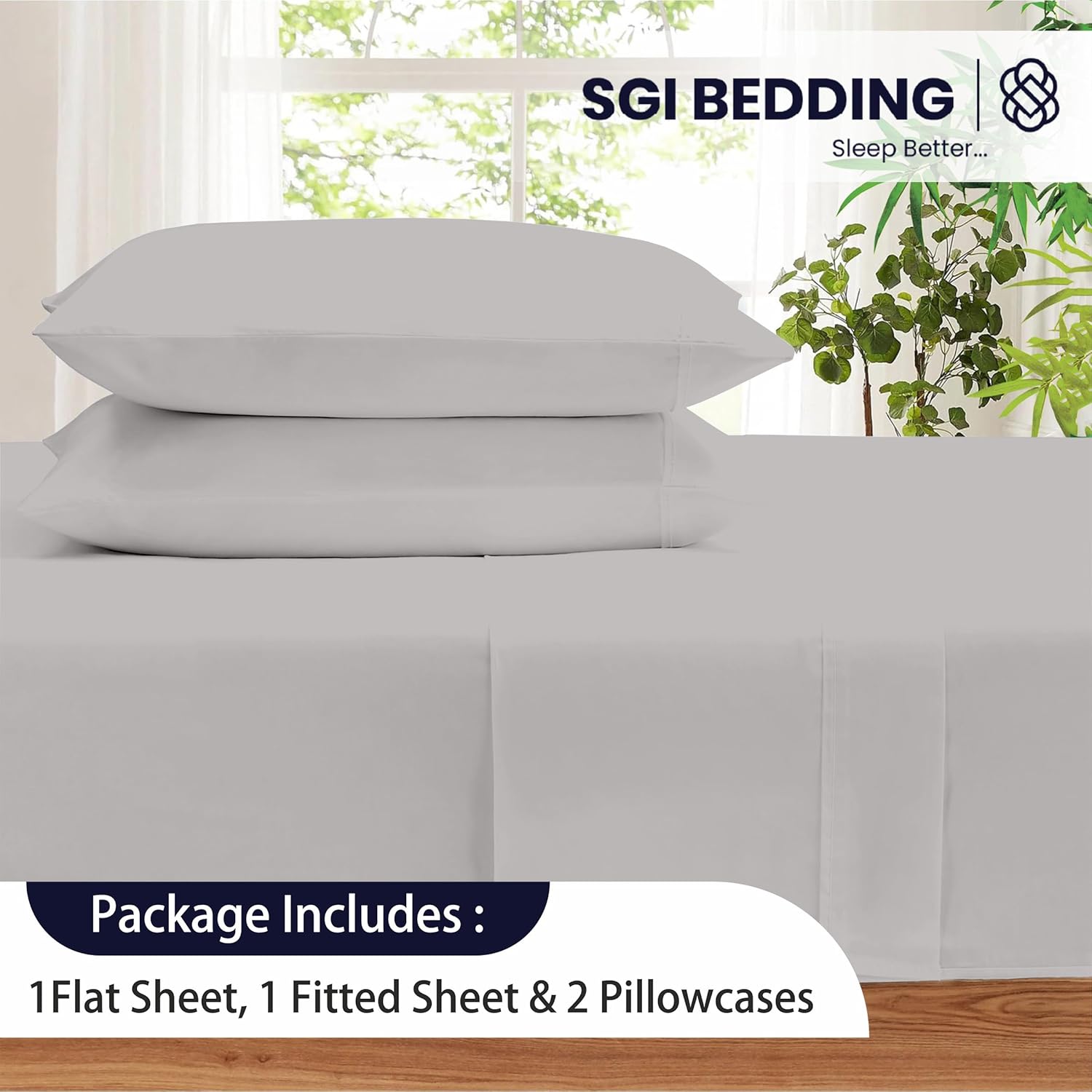 SGI 400 Thread Count 100% Egyptian Cotton King Sheet Set Ultra Soft, Breathable, Deep Pocket 15 Fitted, Durable & Luxurious 4-Piece Bedding Set for Hotel-Quality Comfort, Light Gray Sheets