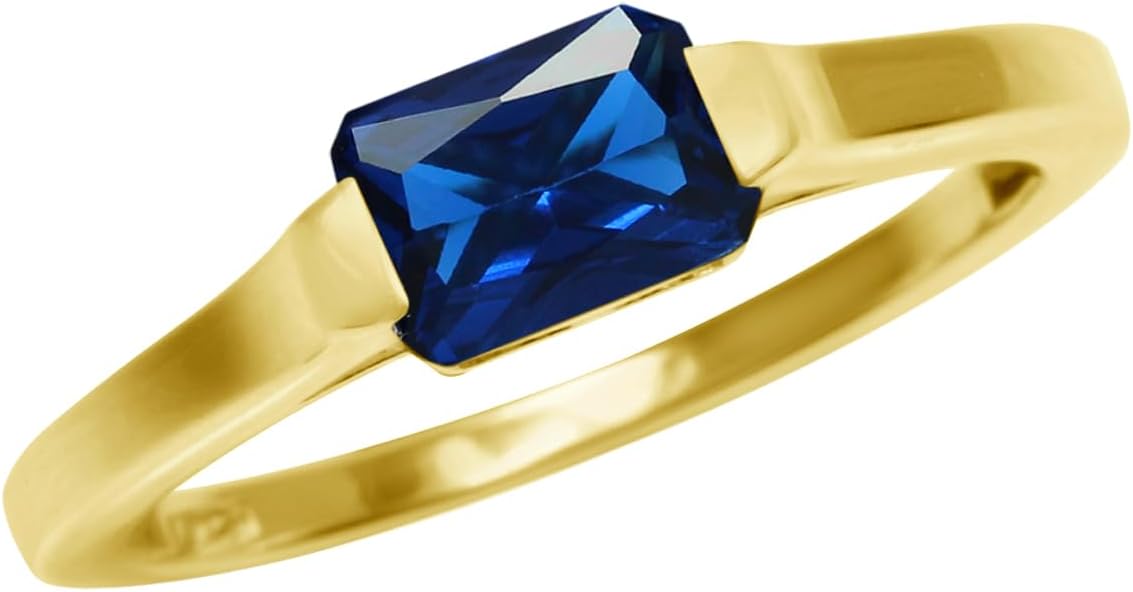 Silvershake Half Bezel Set Octagon Shape Gemstone White Gold Plated or Yellow Gold Plated 925 Sterling Silver Minimalist East-West Solitaire Promise Ring Jewelry for Women