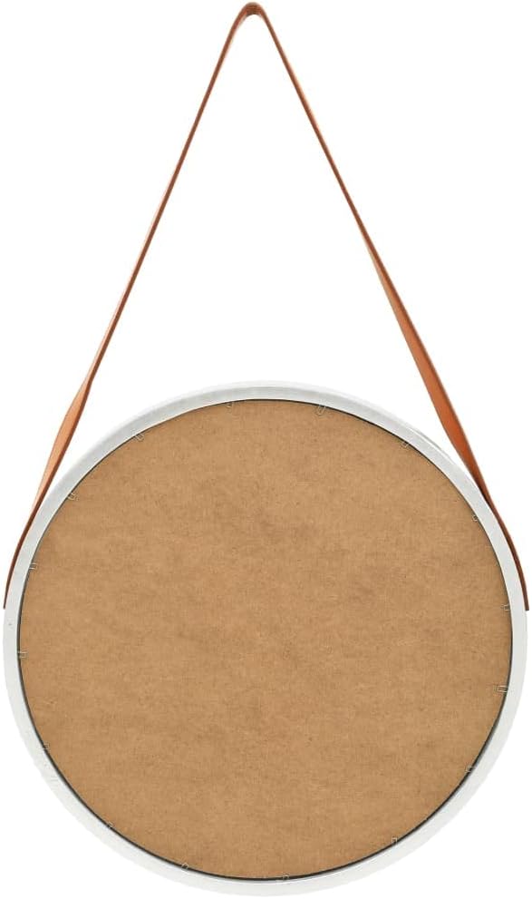 Dieser Vintage-Spiegel ist so konzipiert, dass er ein eindrucksvolles visuelles Statement in jedem Schlaf- oder Wohnzimmer setzt. Dieser trendige Hängespiegel bietet eine elegante Interpretation des Vintage-Designs für moderne Innenräume. Der große runde Spiegel hat einen robusten Holzrahmen aus Paulownia-Holz und einen glatten, weichen Gürtel aus Kunstleder, an dem er an der Wand angebracht werden kann. Mit dem Gürtel kannst du den Spiegel auf jede gewünschte Höhe einstellen, wodurch dieser Dekospiegel mehr Flexibilität verspricht.Farbe: Silbern und BraunMaterial: Kunstleder, Paulownia-Holz, Glas und HolzwerkstoffGlasspiegel-Durchmesser: 50 cmGürtel-Größe: 120 x 3 cm (L x B)Spiegelform: Rund