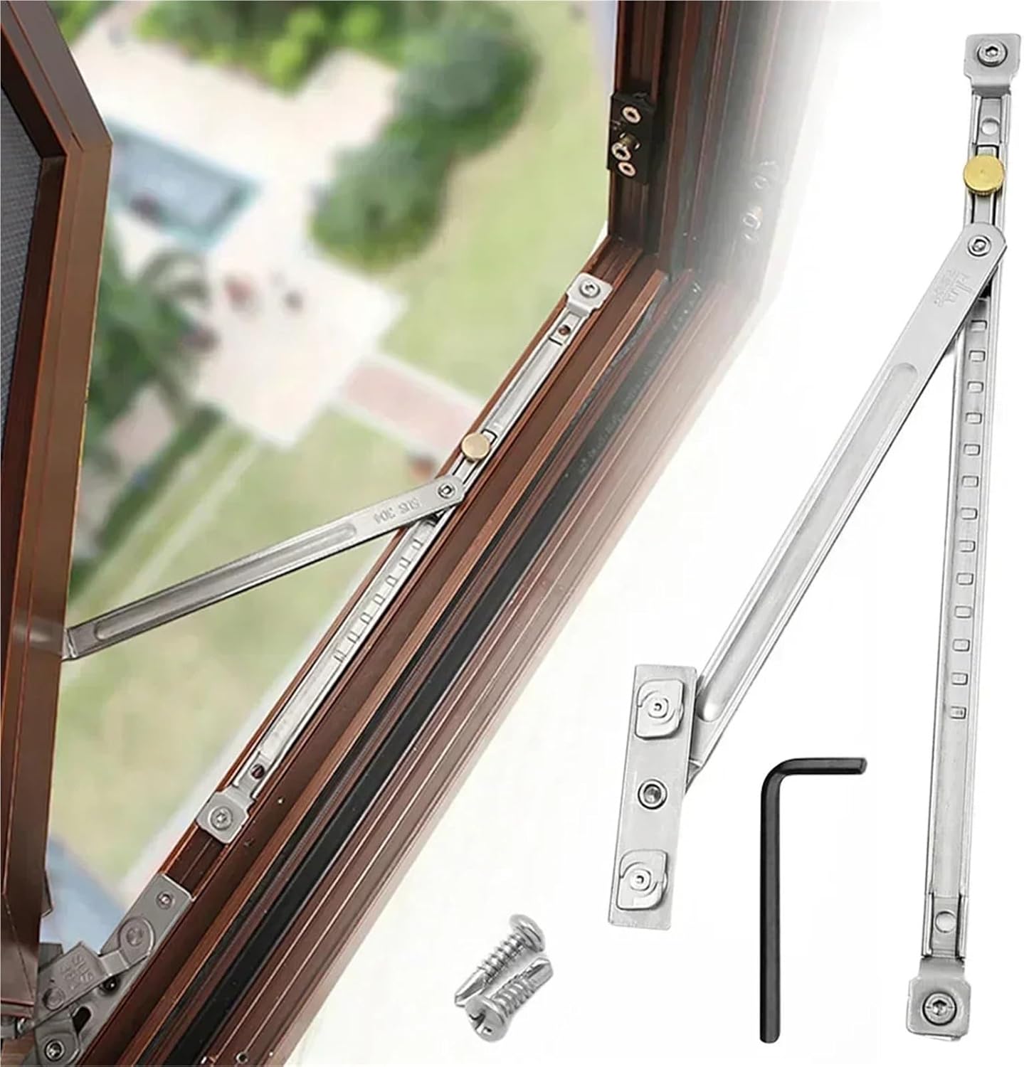 Specifications:*Material: Stainless Steel*Size:About 12 inches*Color:SilverPackage Content:1 set Lock RestrictorNote:1. The real color of the item may be slightly different from the pictures shown on website caused by many factors such as brightness of your monitor and light brightness.2. Please allow slight manual measurement deviation for the data.Easy Operation: With the window wind braces, you can effortlessly adjust the opening of your windows. This feature allows for convenient ventilation while maintaining control, making it an ideal choice for any room in your homeVersatile Design: The window wind braces provides an effective way to hold your windows open at the desired angle. Whether you need air on a warm day or simply want to let in some light, this brace for windows unit offers convenienceEase of Installation: These braces allow you to quickly and easily set them up on various types of windows. This design feature means you can improve your window safety in no timeVersatile Compatibility: Suitable for a wide range of window styles, including casement and sliding windows, our window wind braces can be adapted to fit your specific needs. Whether for home or office use, they provide an ideal solution for any settingMulti-Purpose Functionality: Window wind braces serve multiple purposes, acting not only as safety devices but also as supports for open windows. They can be used to hold windows securely in place while you enjoy the air, making them ideal for use in various weather conditions