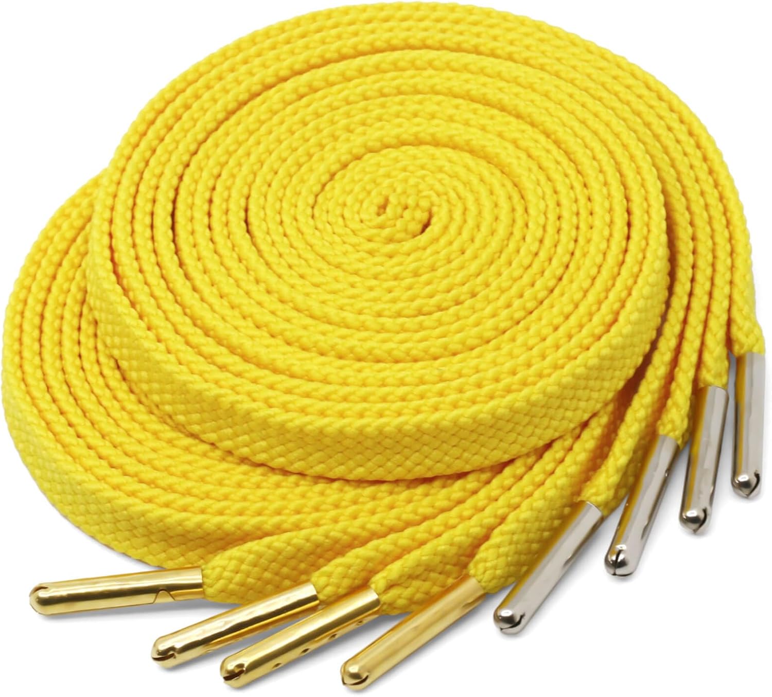 • Flat Shoelaces With Metal Tips: These are woven with multiple strands of polyester yarn. Double layer thickening and premium metal tips increase wear resistance, softness and durability. Excellent dyeing process ensures that these shoe strings retain their brilliant hues, even after multiple washes
